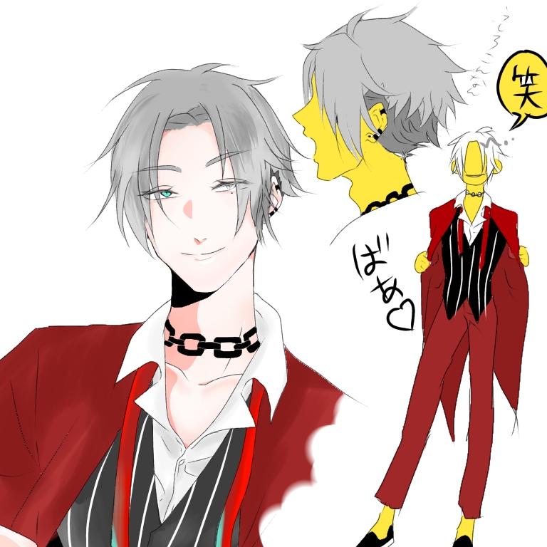 【性格】自称、優しく、物腰柔らかく社交的…なのは大嘘、こいつはとんだ道化師だ。道化師のようなふらふらとした振る舞いをする。他人を信用させて、そこから"堕とす"ことが大好物であり、彼のただひとつの"楽しいと感じること"である。元の彼は頭の出来が良く、なんでもこなせてしまった為か幼い頃から"なんかもう全部つまらない"という感情が強く、故に、悪魔を騙して堕とす行為が今の彼の心の安定剤となっている。立場の高い悪魔が人間によって善がり狂わされるのが滑稽で滑稽でたまらない。ただし、喜怒哀楽の感情が死んでいる訳では無い。予想外のことには驚くし、嬉しいことがあると機嫌がいい。心は普通に傷付くし憤りだって感じることもあるだろう。ただ、その数多の感情よりも、"楽しいこと"への執着と"全部つまんねえ"感情の方が強いだけである。愛されることに慣れてない。たぶん動揺する。要するに思考が可哀想なクズ(くそ)