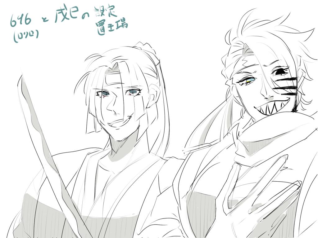 髪は縛り 。ハチマキは696の落し物 。政府側の決まり服。目の色はイラスト参照。打刀常備 、乱れ刃 。おでこに番号ハチマキで隠している。新選組リスペクト。