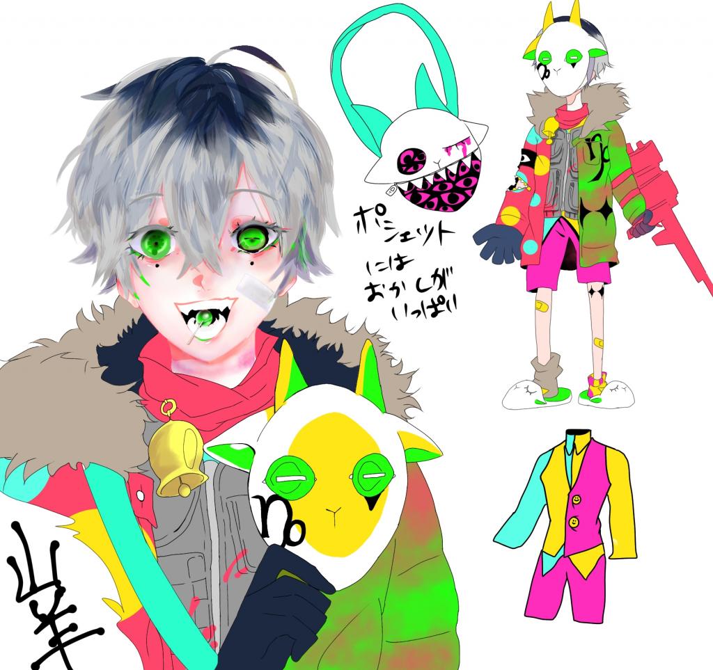 【容姿】身長159cm、左目はヤギ目。分厚い冬用のアウターの中には、防弾チョッキと子供用スーツを着ていて、ズボンは短パン。靴下は丈の長さバラバラ、山羊のスリッパ履いてる。山羊のお面つけてる。脚や太ももにダイヤのマーク。ズボンのポケットや肩から提げてるヤギさんポシェットの中にはキャンディやクッキーの入った小分けの袋がたくさんあるよ【人称】1:ボク(俺)、2:キミ、3:キミたち